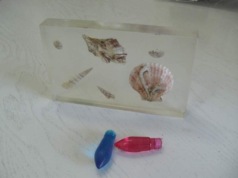 Hier wurde der Versuch mit Muscheln und eingefärbten Gießharz gemacht.