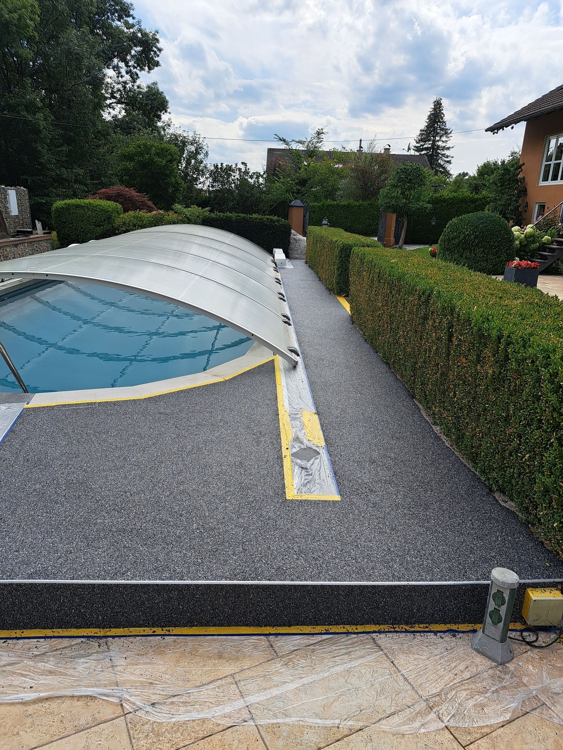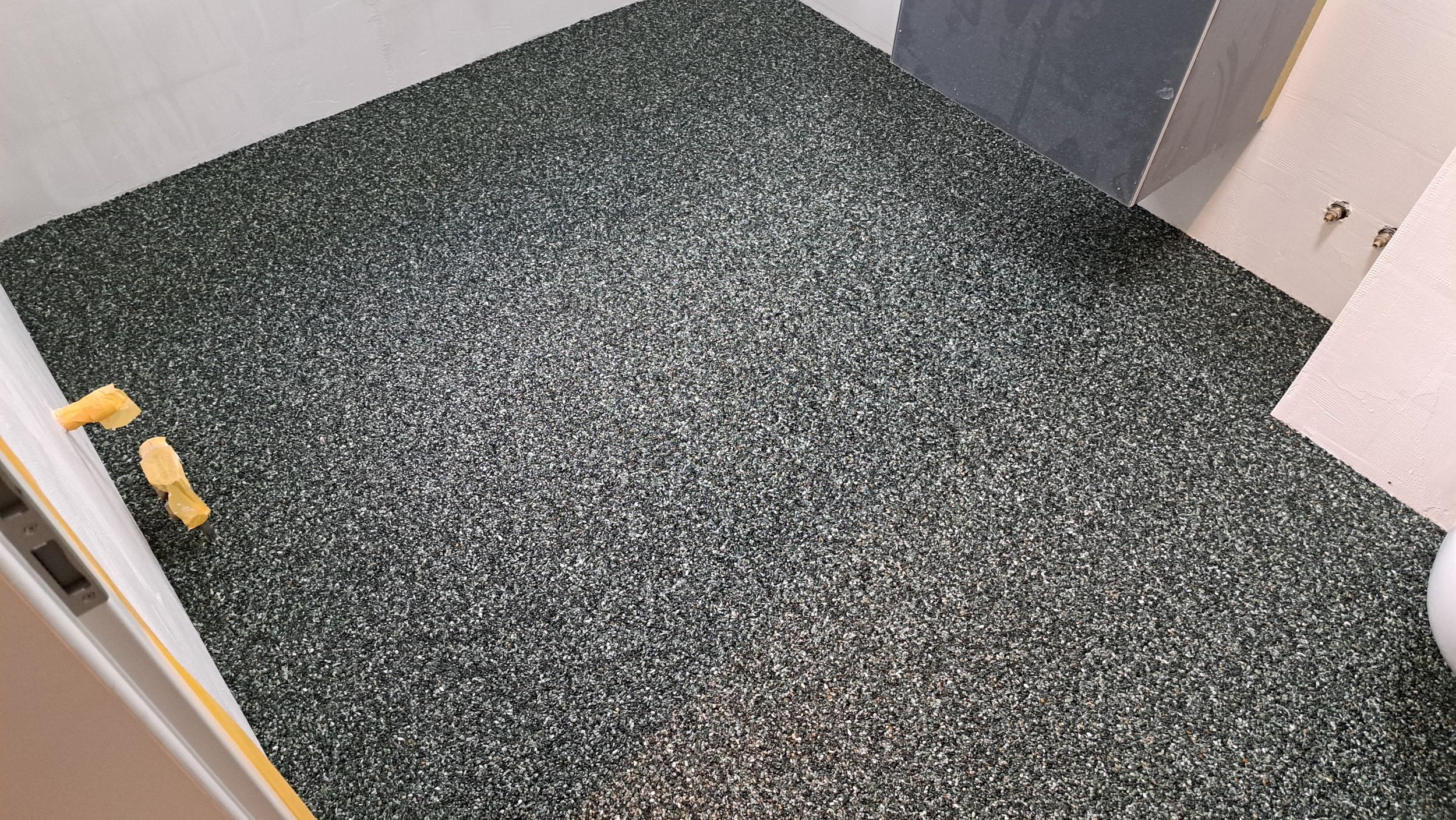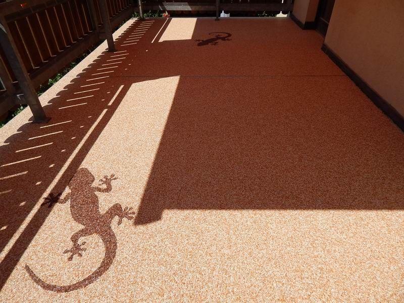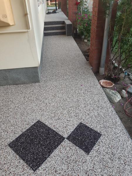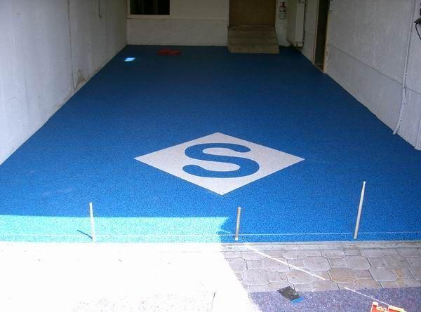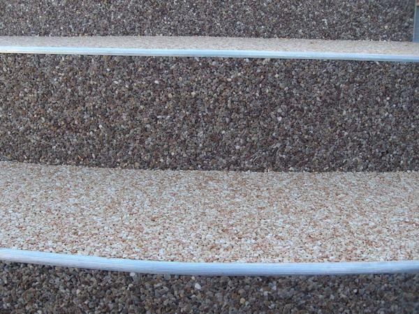Für die Fertigung eines hochwertigen Steinteppichs werden viele Steine oder Kies mit Epoxidharz oder einem anderen Bindemittel gemischt und direkt auf den Boden gebracht. Gefärbte Steine oder verschiedene Steinarten wie Marmor, Splitt oder Quarz sorgen für verschiedene Muster und Formen, die eine einzigartige Optik erzielen. In der Regel kann der Boden 24 Stunden nach der Verlegung bereits betreten werden und ist voll einsatzfähig.